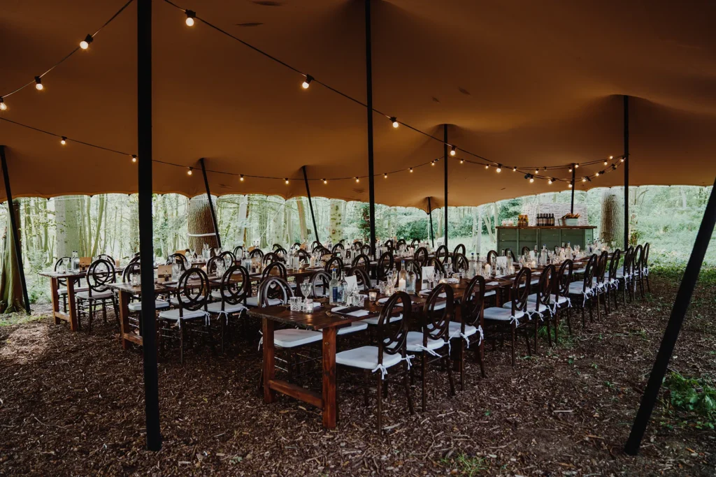 Our stretch tents are ideal for weddings, dinners, drinks receptions, and after-dark celebrations — creating stylish spaces that feel at one with the surroundings.